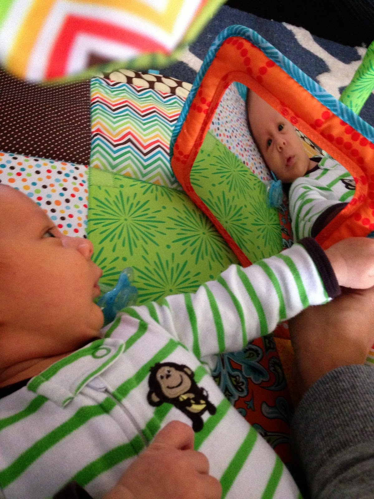 - We snuck in some time on your playmat and you got really excited seeing the mobile and things hanging from it.