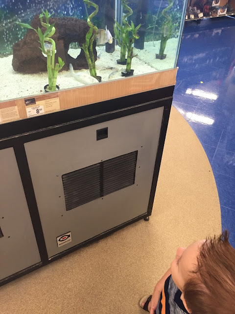A quick trip to the pet store for dog food. Anytime we go there we have to see all of the animals and fish.