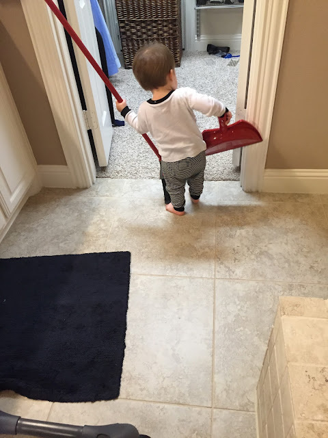 Helping momma clean.