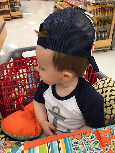 Out grocery shopping and, all on his own, Mr. Cool decides to turn his cap backwards!
