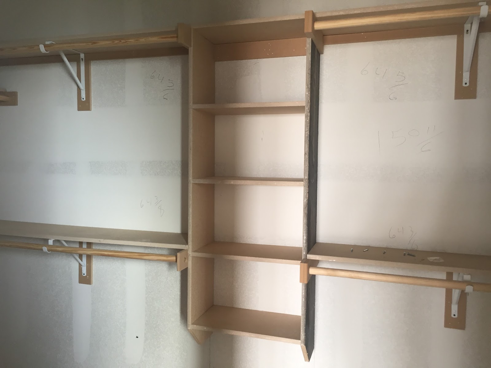 | Master closet…All of this shelving is not supposed to be there. We asked them to leave it off because we have a custom closet being installed after we close. Now they get to take it all down. |