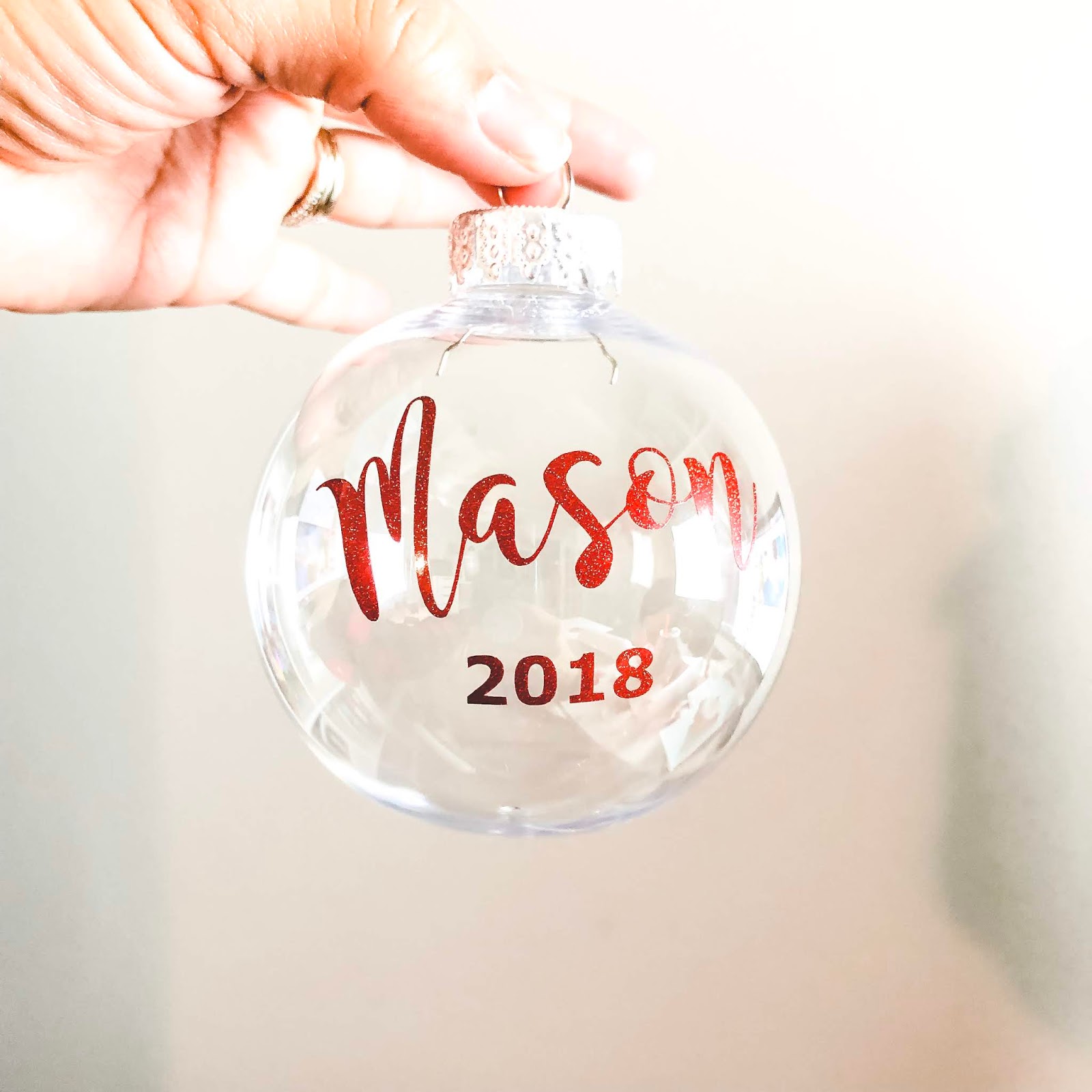 Yesterday was Mason’s classroom Christmas party and I was the room mom. The Fall party was great and while I never felt like I had to do better, I did know that I wanted it to be fun and that each kid would get to take something home with them that would help them remember it. Most party’s have a craft and possibly a game. I decided that we would do a craft and a book exchange for this one, hence where the personalized ornaments came in. I was only up until 1AM making them. My fault for procrastinating, but with going out of town the weekend prior and then working, the night before was crunch time. They turned out great, so I’m going to share with you what you’ll need for these ornaments along with links on where to buy all of the things all year round.