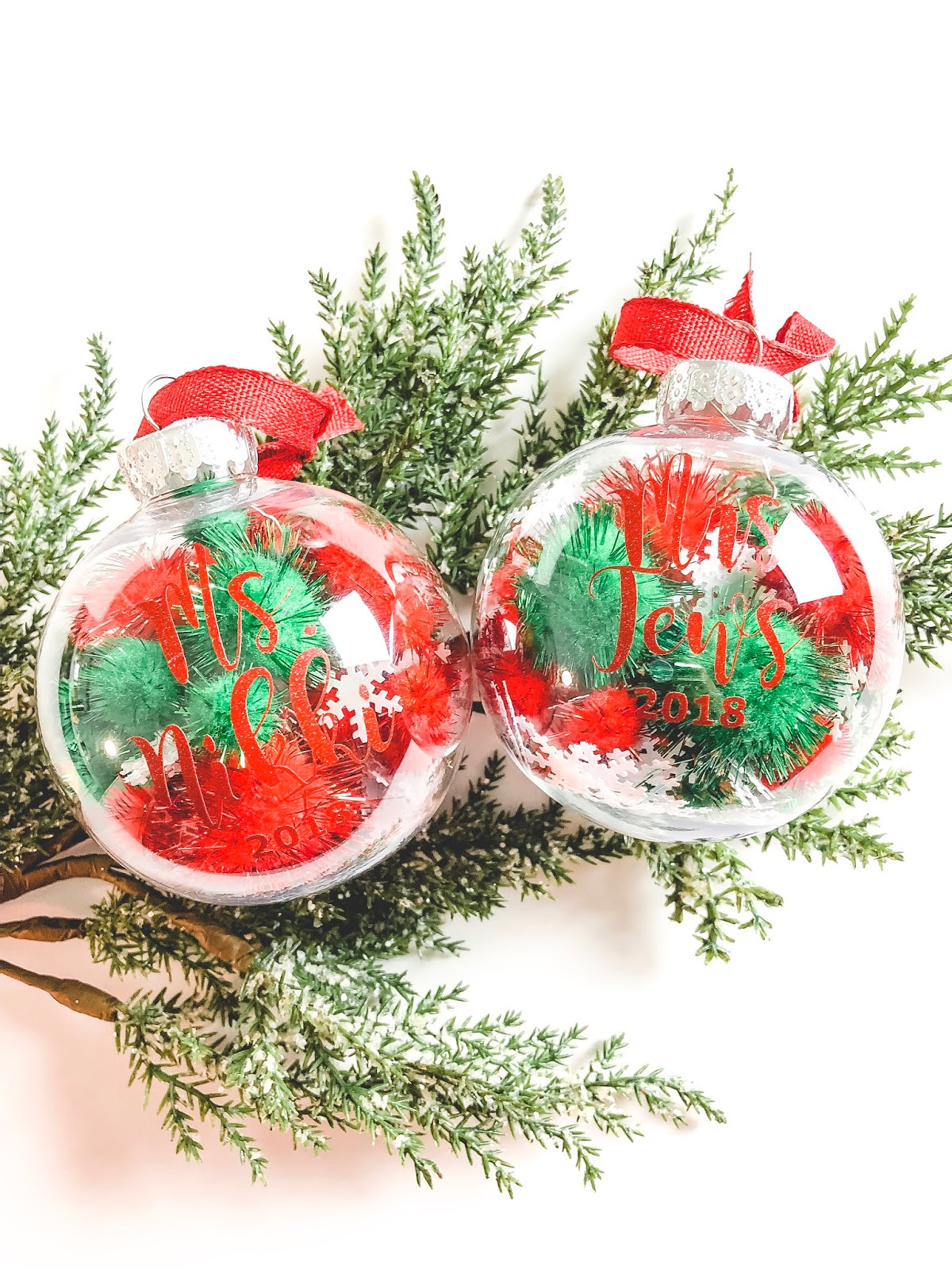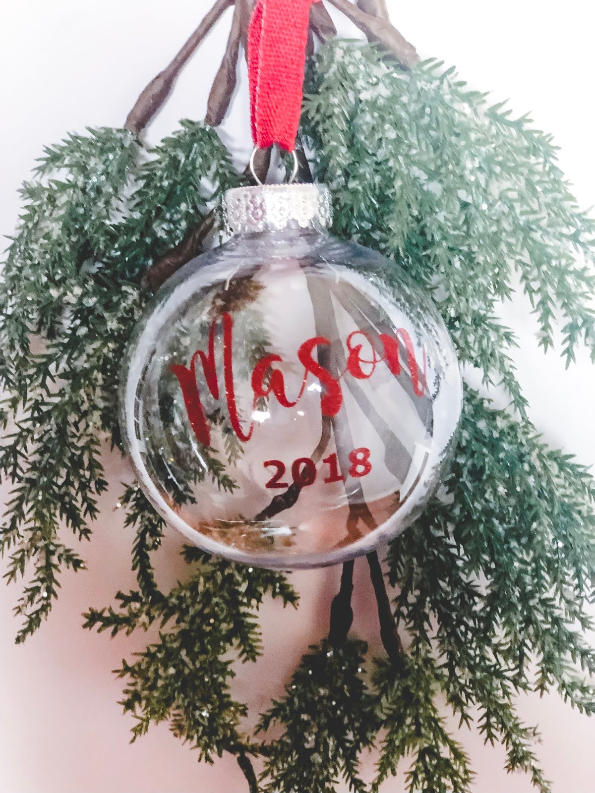 Last but not least you’ll need something to tie on the top of the ornament for them to hang it with. I chose red ribbon, but you could also use twine. When choosing a ribbon, do not get satin because it will run. Grosgrain is a good ribbon to choose from. The ribbon I linked isn’t the one I used, but it’s a good one. Your options are endless when it comes to colors and prints on ribbon, so get creative and pick a fun one.
